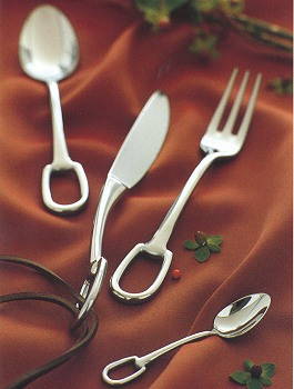 Characterized by original shapes and handles, the Attelage cutlery set with a stainless steel finish is inspired by the harness rings found in multi-horse tack. This collection consists of 15 pieces: table, dessert, and serving cutlery.