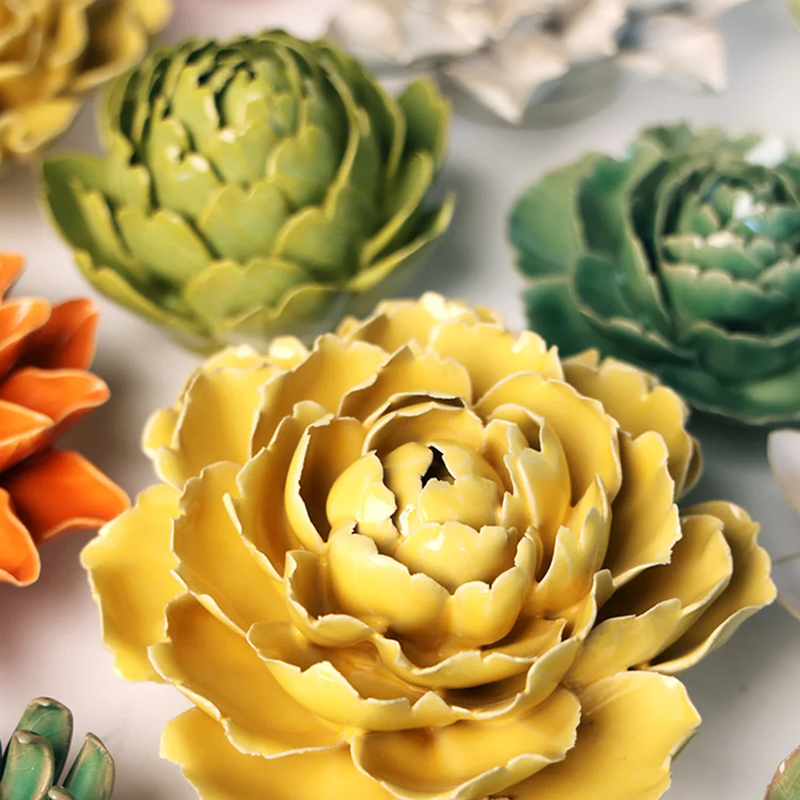 Decorative flower made of glazed ceramic.
