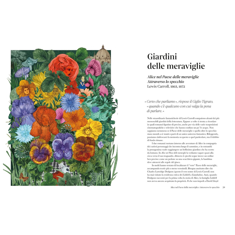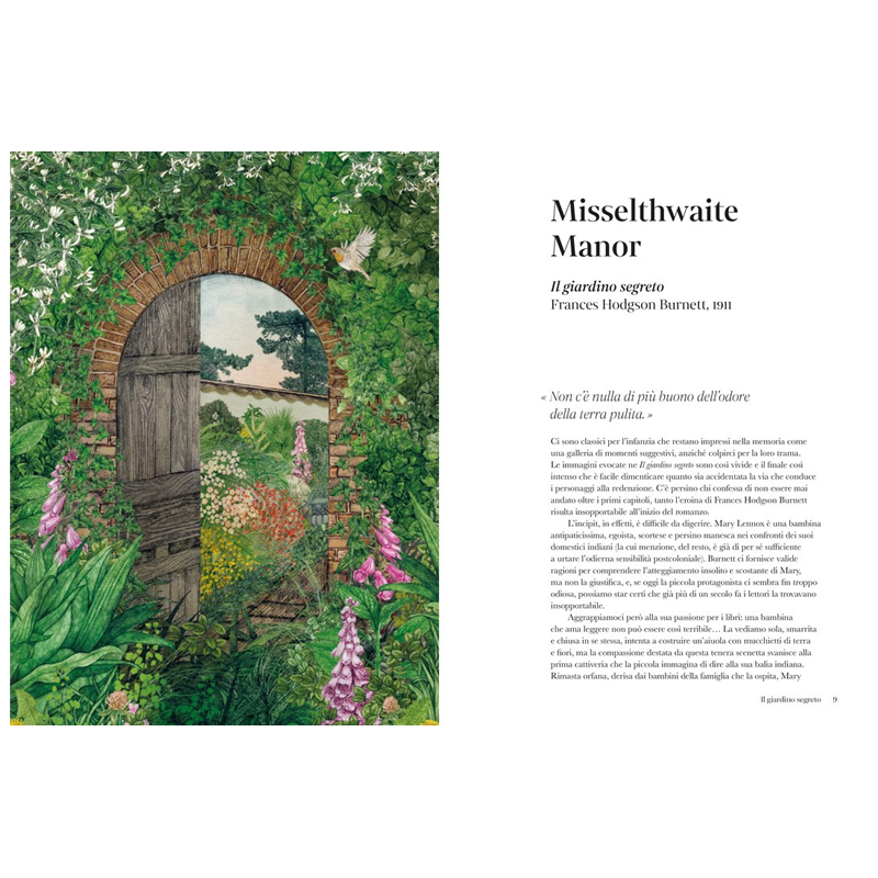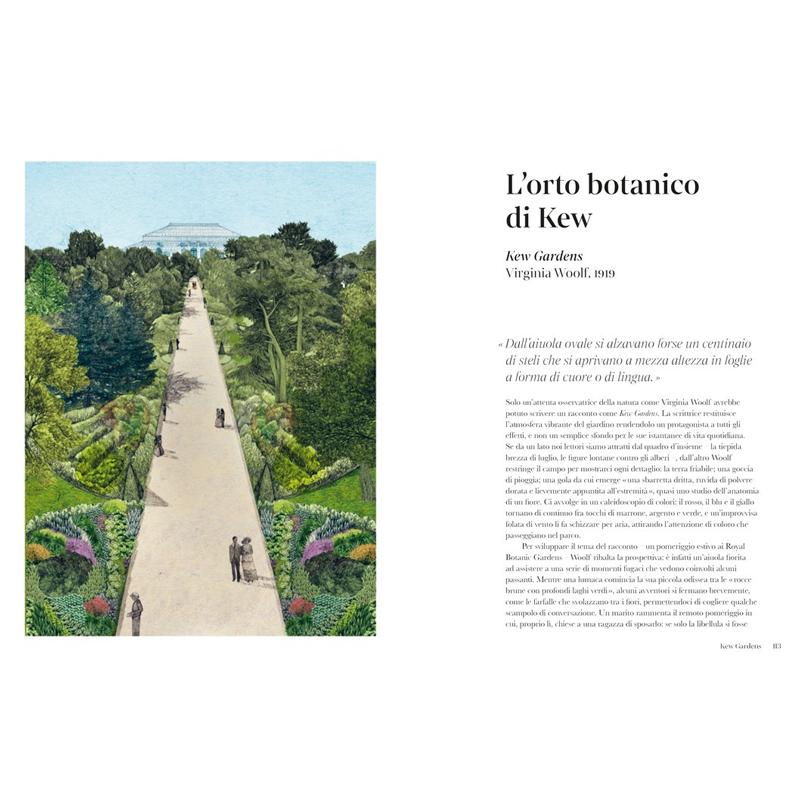 Le brillanti aiuole di Virginia Woolf e gli enigmatici sentieri di Borges, il malinconico parco di Giorgio Bassani e la selva imperfetta di Colette, i campi di tulipani di Dumas e le variopinte bordure di Jamaica Kincaid… Nelle opere letterarie di ogni epoca i giardini proiettano il lettore in mondi incantati, mentre accolgono l’evolvere dei personaggi e il fluire dei loro pensieri. Scortata dalle illustrazioni di Lucille Clerc, Sandra Lawrence ci guida oltre siepi e recinti, per esplorare 30 luoghi verdeggianti creati dalla fantasia di grandi scrittori e poeti.