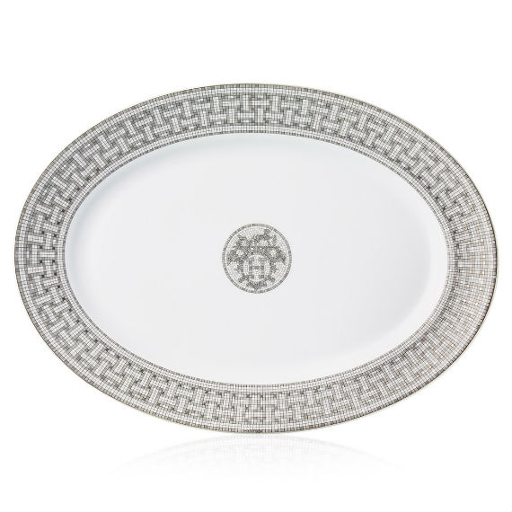 From the Mosaique Au 24 Platine Collection by Hermes, this tray pays homage to the mosaic which covers the floor of the 24 Faubourg Saint Honore, the historic Hermes store.