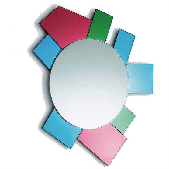 Looking for a contemporary accent mirror for your home? We love this frameless mirror which floats effortlessly on the wall. The Glas Italia Wall Mirror DIONISO3 was designed by Ettore Sottsass and is made by Glas Italia in Italy. This contemporary wall mirror coordinates beautifully with any interior. This artistic Italian mirror is part of the "Gli Specchi di Dioniso" wall mirror collection by Ettore Sottsass. Ettore Sottsass is known the world over as one of the initiators of the revolution in architecture and design. This mirror features polychromatic frames composed of elements in laminated colored mirror, colored laminated glass and lacquered glass. The square mirror face is echoed by seven smaller mirrors in different colors along the interior perimeter. This provides an unusual degree of visual complexity, as multiple planes of space are subtly refracted without disturbing the large, placid mirror surface in the center. The simplicity of the design is balanced by the warmth of the colors, making it a modern piece that can suit virtually any interior. Adding an architectural touch to any room or commercial space, the Glas Italia Ettore Sottsass Mirror DIONISO6 Gli Specchi di Dioniso is a fitting choice for any decor.