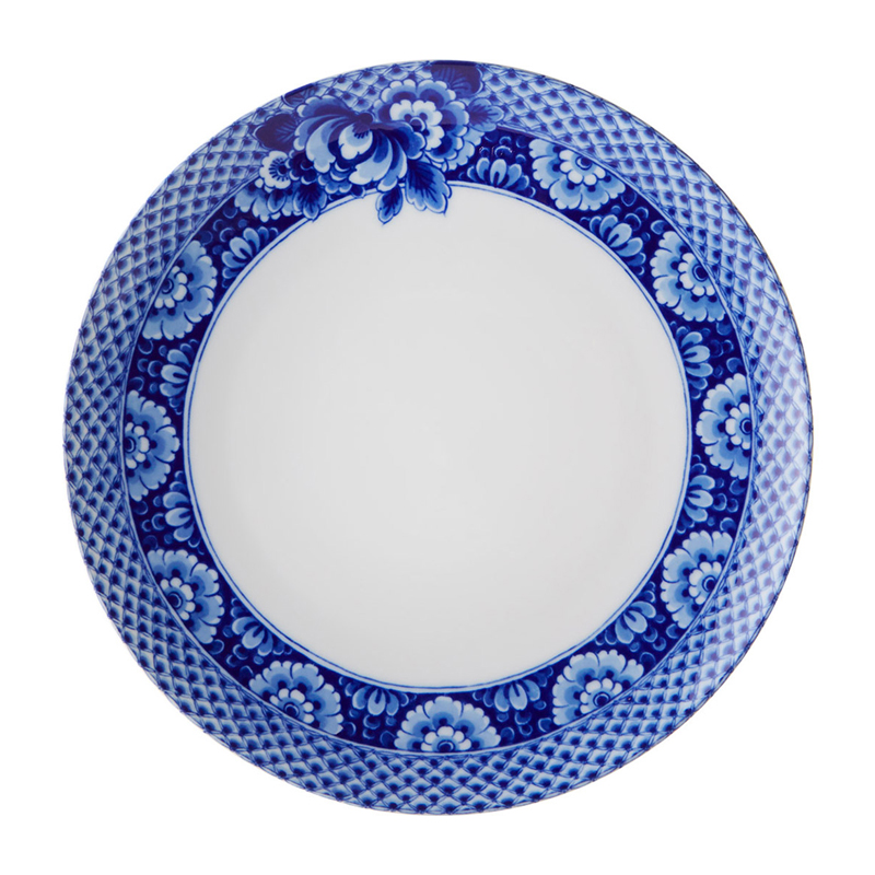 The pieces of this set that are serving as the launch for the complete Blue Ming collection include: the big tea cup and saucer, the espresso cup and saucer tea pot and sugar pot, a fruit bowl and soup terrine. The Blue Ming collection also features a candleholder and the flower vase, which are more sculptural iconic pieces that offer unique versatility. By removing the top of the vase, you create a small bowl in which to place chocolates or other small treats. Not to be outdone, the candleholder is also adaptable. In addition to a candle, it can be used to hold a flower, or it can work as an iconic piece to furnish your table. This high-end, well-made ceramic collection is completed by a range of plates: desert, bread & butter; soup, dinner, charger and serving. The borders of these pieces reveal different patterns and when stacked, you experience all their richness in a re-interpretation of the traditional Delft Blue.