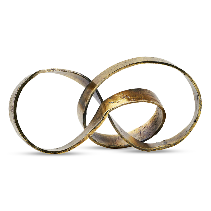 Ribbon is a playful and different alternative way to adorn your home. This unique sculpture is made of aluminium with a subsequent brass finish. Ribbon is the perfect addition to a personal display with smaller decorative items surrounding it. However, it is also beautiful by itself and extremely eye-catching, so if you want, you can also let it adorn a bookcase or shelving unit. The sculpture’s design is twisted to the point where it almost ties itself into a knot. Ribbon measures 38 cm in length, 19 cm in width and 13 cm in height.