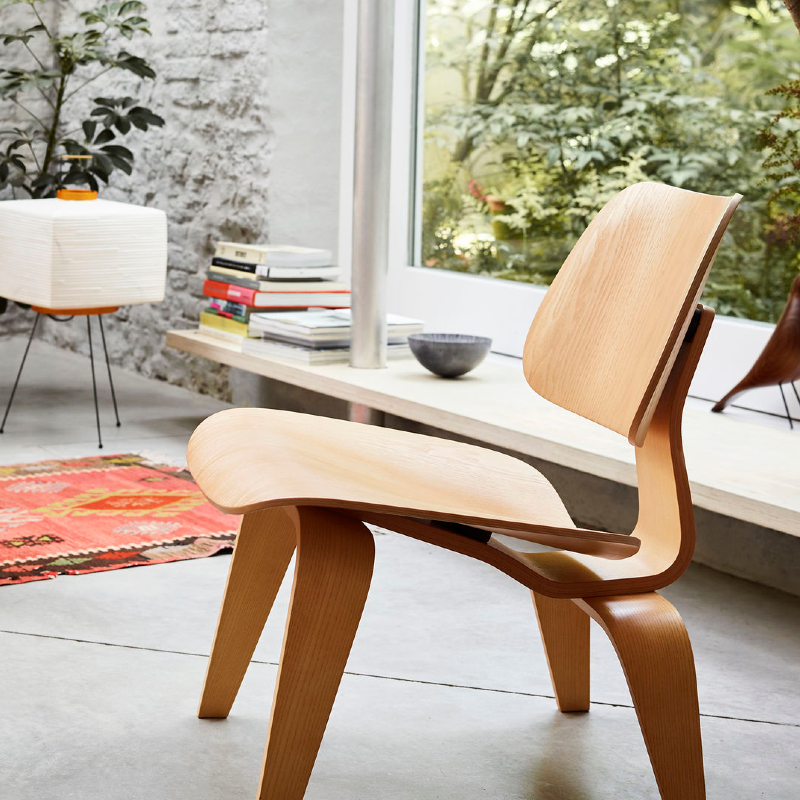 The small Lounge Chair Wood (LCW) is an iconic design by Charles and Ray Eames that dates from the period of their early experiments with three-dimensionally moulded plywood.