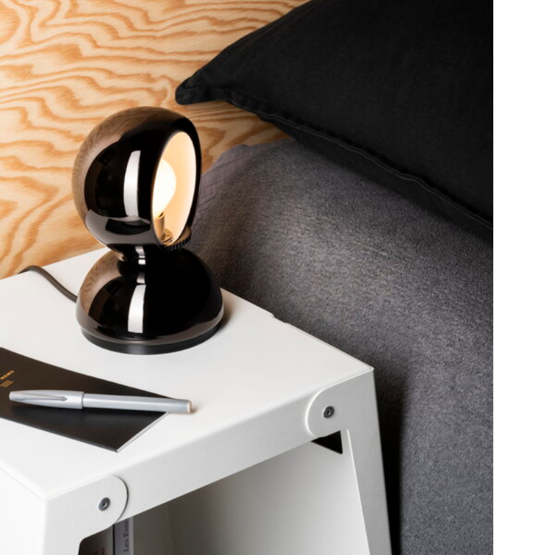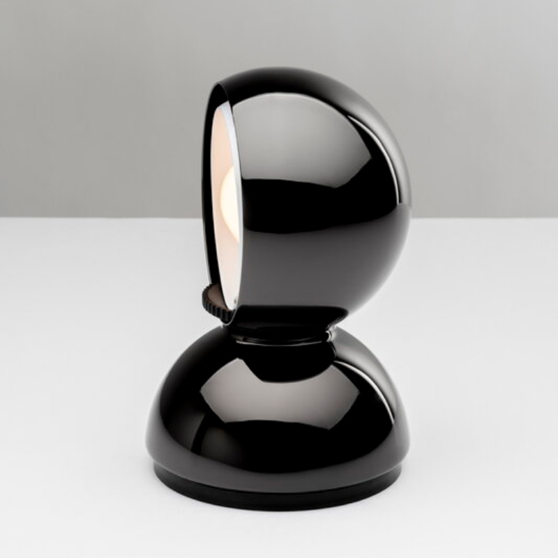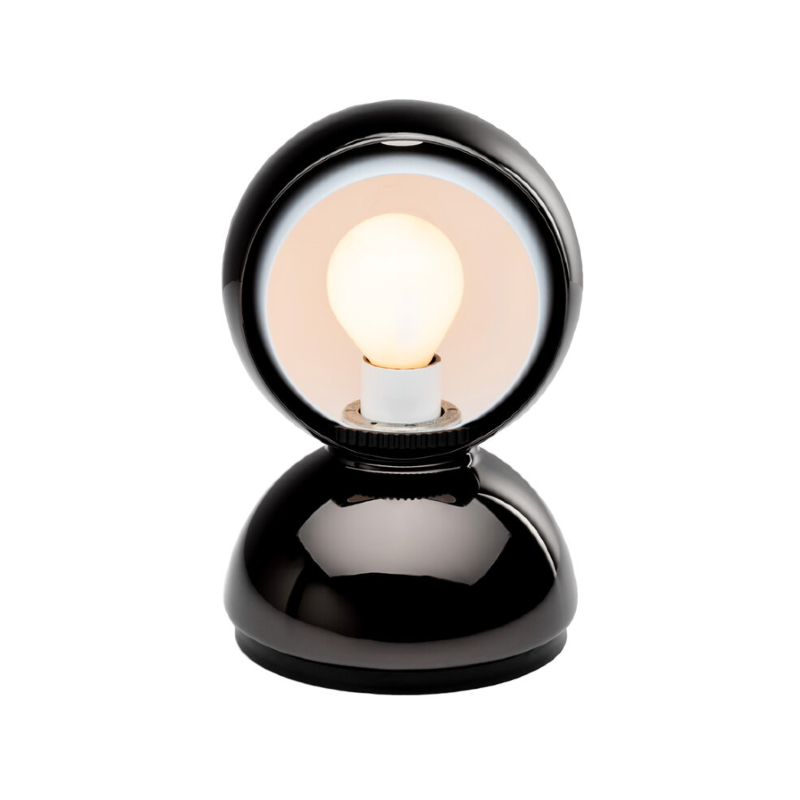 The Eclisse table lamp was already designed in the year 1967 by Vico Magistretti for the Italian manufacturer Artemide. The illuminants are positioned in the head of the small sculpture and are covered by a rotatable sphere that is open at one side, serving as a manual dimmer.