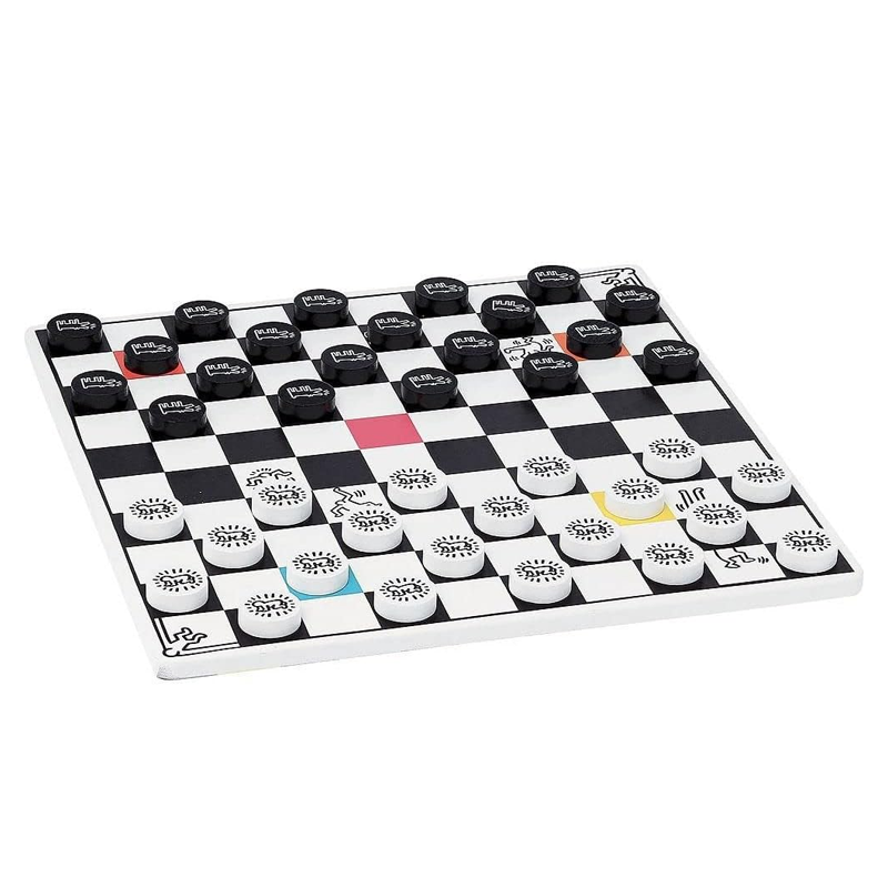 Two strategy games brought together in a 2-in-1 game set: the ladies game and the backgammon game, taking the original drawings of the artist Keith Haring.