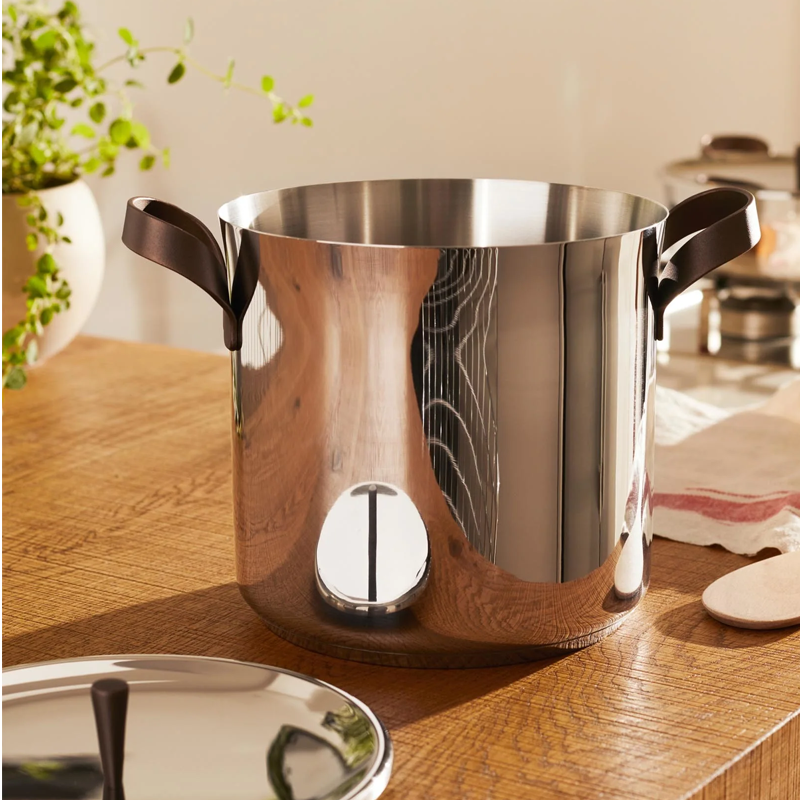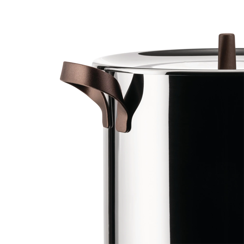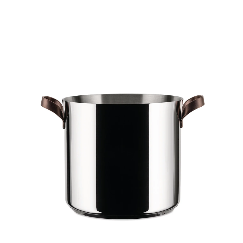 Stockpot in 18/10 stainless steel. Handles in 18/10 stainless steel with PVD coating brown. Magnetic steel bottom suitable for induction cooking.