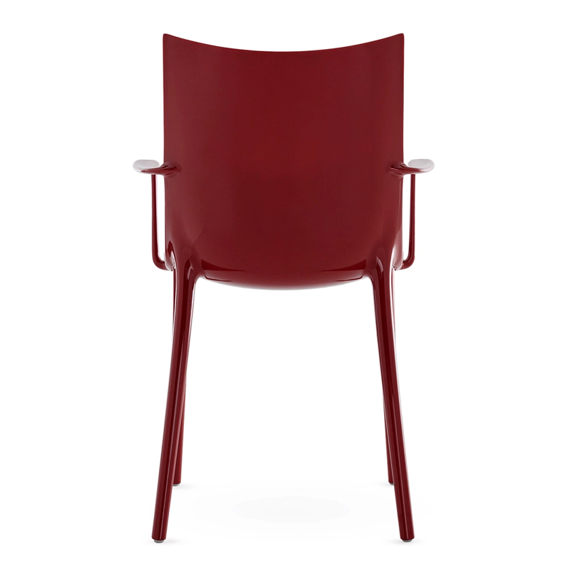 Philippe Starck takes us to a new pinnacle with the H.H.H. - HER HIGHEST HIGHNESS chair. With unparalleled elegance and graphic grandeur, H.H.H. defines the very essence of the human being who interacts with it, forcing him to take a stand. An object that goes beyond the mere concept of a seat, transforming every moment spent on it into a moment of true royalty. The structure is made of recycled material and the seat is available in different finishes: recycled leather with green tanning treatment, in black and leather, eco-friendly texture made partly from recycled material and partly from renewable sources in black and tobacco and in the super glossy finish in white, black, burgundy, rust, mustard, blue and green. But H.H.H. rises above the simple practical functions of a chair, becoming an emblem of style that enchants and inspires anyone who approaches it thanks to the Kartell x Liberty edition, upholstered in six Liberty fabrics with bright floral prints. Faithful to its pioneering role in the search for new and different forms of technological innovation, Kartell has also decided to take a further step in this direction, experimenting with a new “graphic impression†technique in which, using highly technological printing, 4 floral and geometric patterns are proposed in different colour versions.
