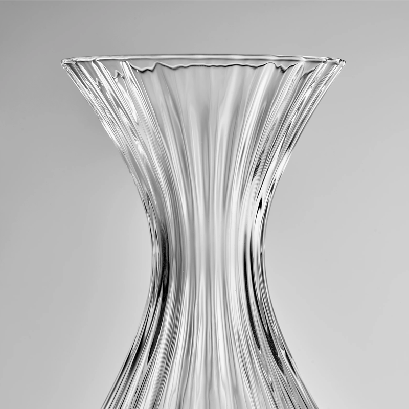 The Inku carafes are in ribbed glass, where the delicate folds, like whalebones, subtly fade toward the edge of the glass. This elegant design shows Sergio Herman’s poetic side.