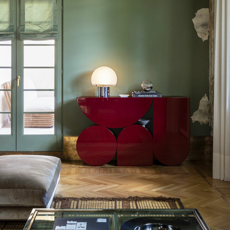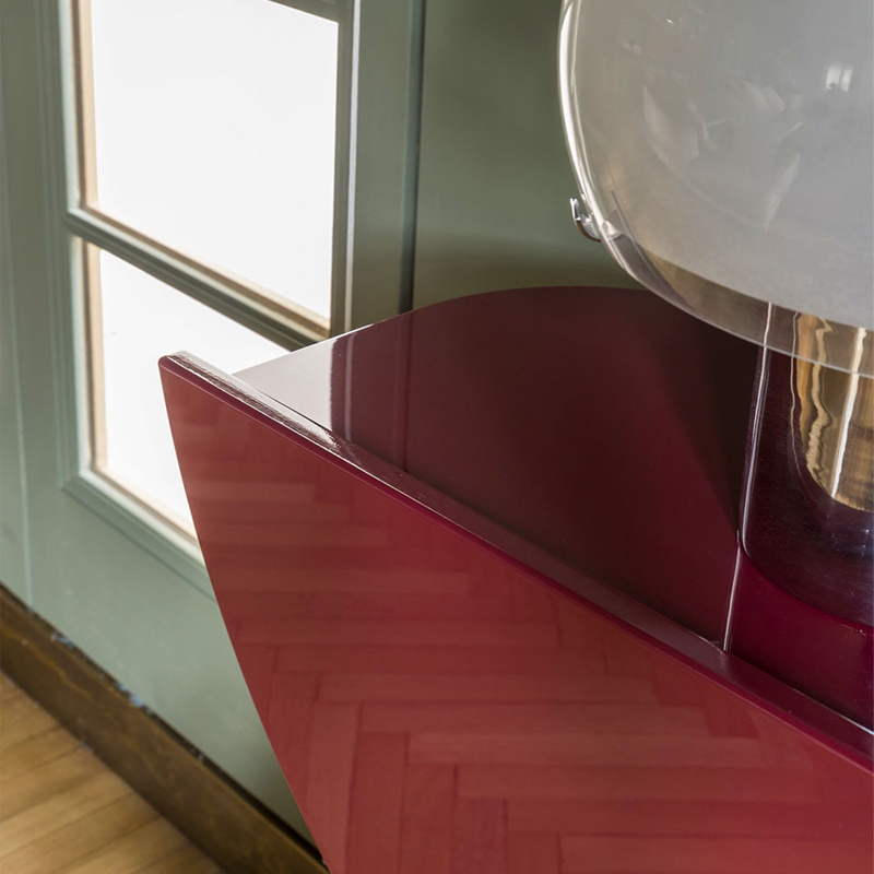 Console in MDF in matt or glossy lacquered finishes and hand-spatulated materical in the colors as per sample. Aesthetic balance between leg and top, to furnish with strong personality different areas of the home, from the entrance to the space of passage from the living room to the sleeping area.