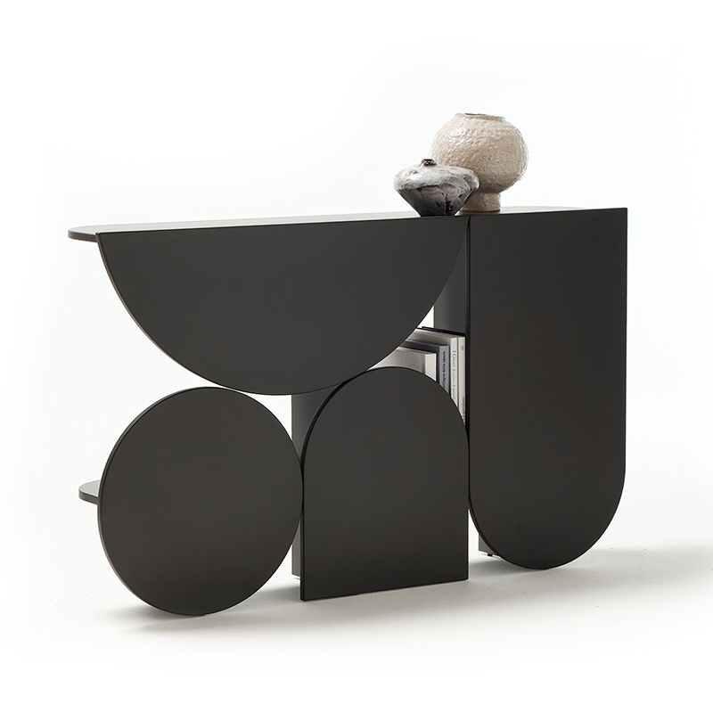 Console in MDF in matt or glossy lacquered finishes and hand-spatulated materical in the colors as per sample. Aesthetic balance between leg and top, to furnish with strong personality different areas of the home, from the entrance to the space of passage from the living room to the sleeping area.