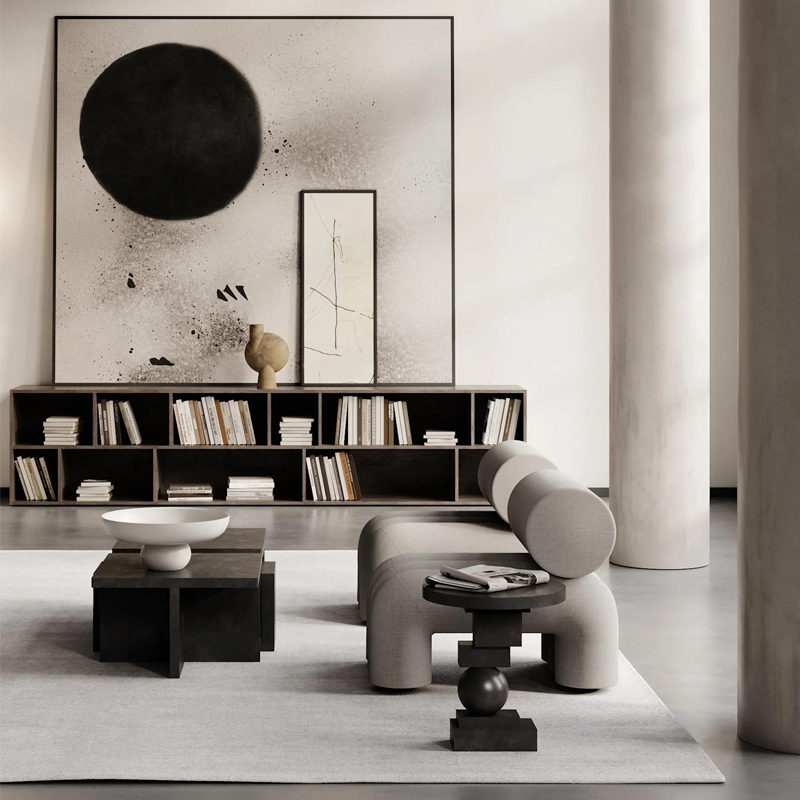 Rising from the floor like an art sculpture, Artist is all about balancing geometric shapes to create a significant and vocal point in the room. The series includes a dining table and a side table. Artist Dining Table goes perfectly together with the Brutus Dining Chairs to create a brutalist and architectural look. Meanwhile, the Artist Side Table is the perfect complement to our Toe Chair series. Made from cast fiber concrete, the Artist Dining Table has a tactile stone-looking surface with small holes and color variations. Due to the product is cast and afterwards hand painted, each product is unique. The Artist Dining Table arrives in two pieces – the tabletop and base, which can be easily assembled with four screws hidden underneath the tabletop. The Artist Side Table is cast in a single piece.