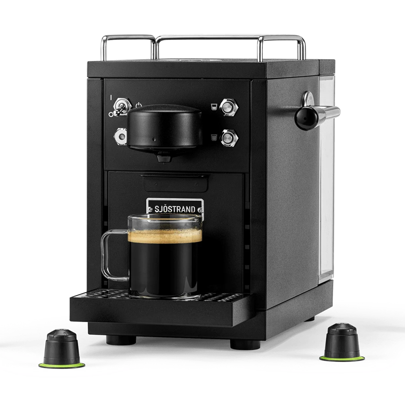 The Original is a stylish Nespresso® compatible coffee capsule machine with premium stainless steel body, a minimalistic Scandinavian design, and a black finish. The machine uses a consistent temperature, and precise water usage for a perfect extraction of flavors and aromas. It's the ideal blend of style and functionality.