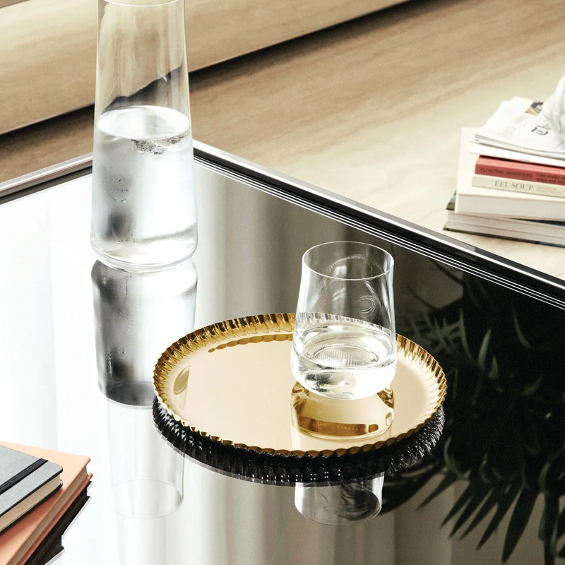 Round tray in 18/10 stainless steel with PVD coating, gold.