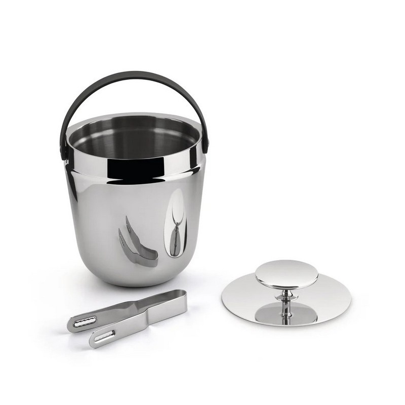 Double-walled ice bucket in 18/10 stainless steel. Handle in thermoplastic resin. Ice tongs in 18/10 stainless steel.