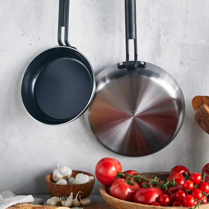 These pans blend refined architectural details with pioneering technology. Each pan is crafted from 3-ply stainless steel and feature a cutting-edge Plasma Tech treatment that complements our groundbreaking Infinite8 coating for remarkable PFAS-free performance.