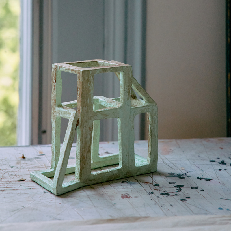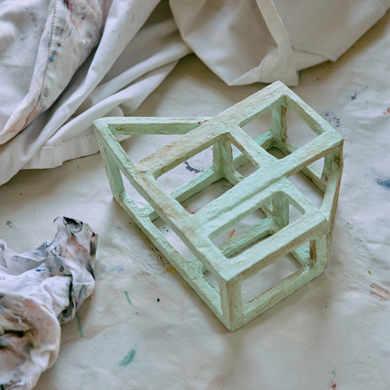 Built from paper-mâché and shaped with an architectural edge, this sculpture embodies creative exploration in its rawest form. A tactile statement piece with sculptural lines and artistic tension—ideal for anyone who finds beauty in the unfinished.