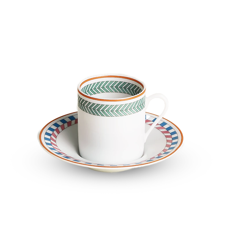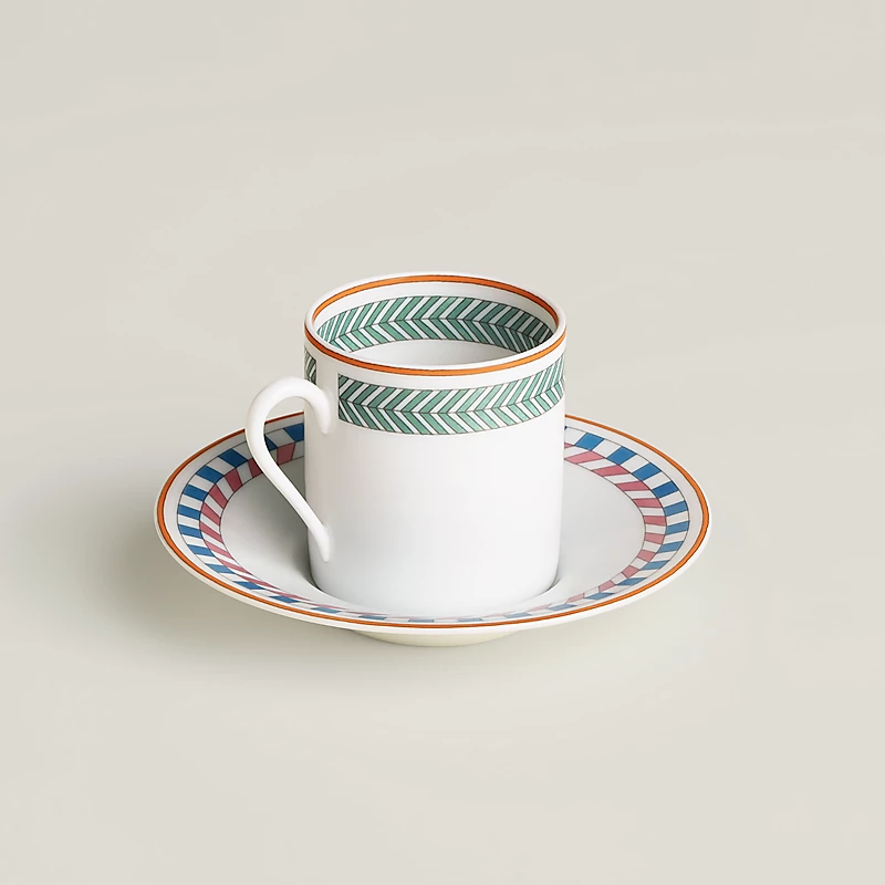 The Hermès En Contrepoint tableware invites you to play with combinations and layering. Colorful motifs adorn the 33 pieces in the set for lunch, dinner, and tea or coffee.