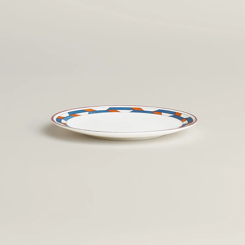 The Hermès En Contrepoint tableware invites you to play with combinations and layering. Colorful motifs adorn the 33 pieces in the set for lunch, dinner, and tea or coffee.