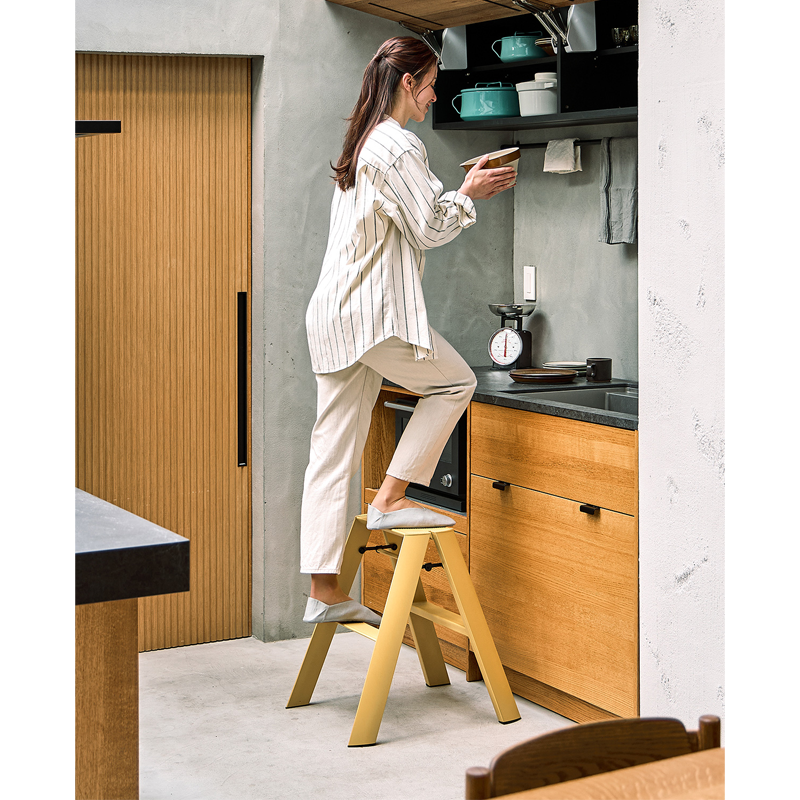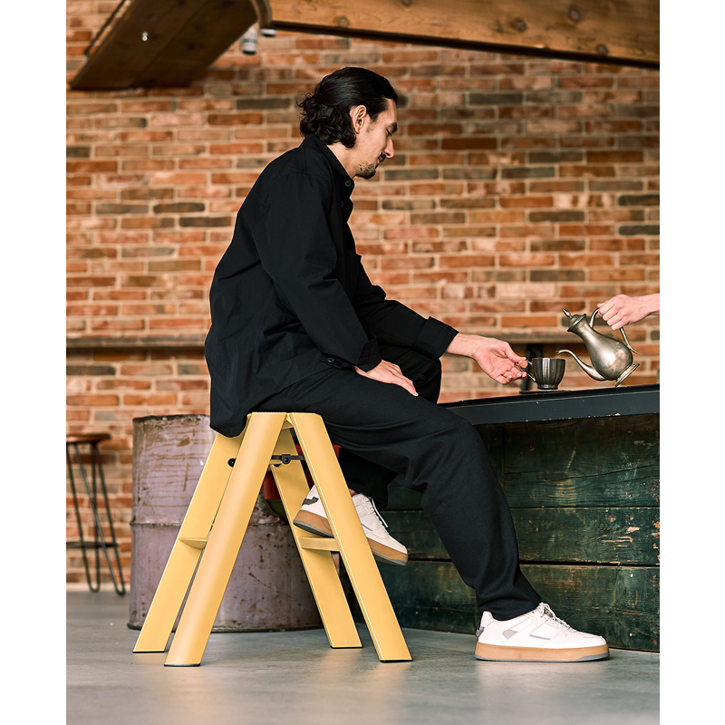 With an appealing, well-considered geometry, Lucano reveals only the essential elements of a step ladder, yet with a surprising refinement that deserves to be on display, just like any other home accessory.