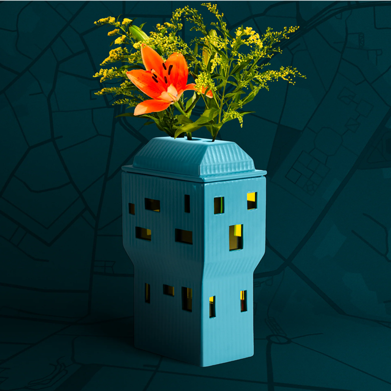 Reimagined as a domestic object, the Velasca becomes Velaschino, a sculptural vase, with the architectural presence scaled down, yet no less evocative. Familiar and instantly recognizable, it introduces a new kind of intimacy, bringing design and memory into everyday life. In this transformation, the iconic form finds a new role: still a vessel, but one that now holds nature and imagination within the home.