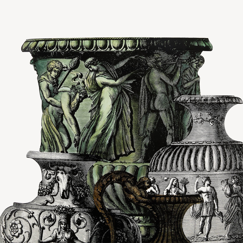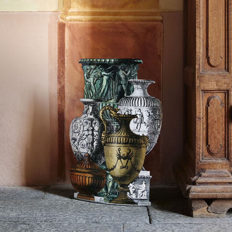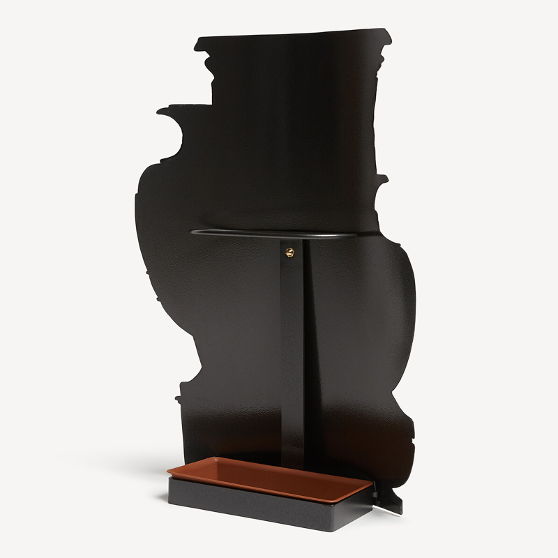 A true example of artistic virtuosity, the trompe l'oeil decoration transforms this hand-silkscreened and lacquered metal umbrella stand into a surprising three-dimensional work of art. For cleaning, we recommend a damp cloth without any soaps or solvents.
