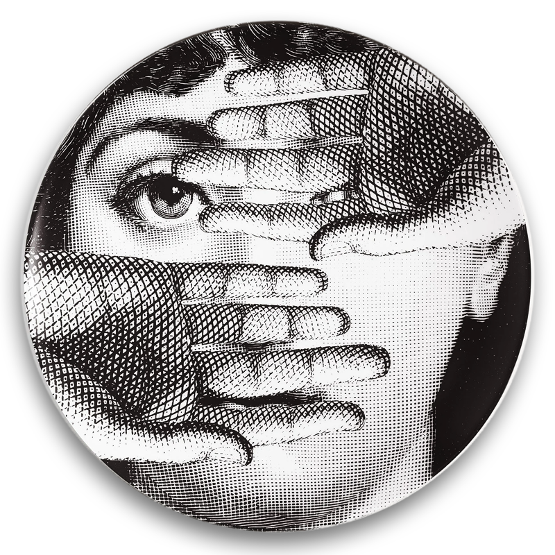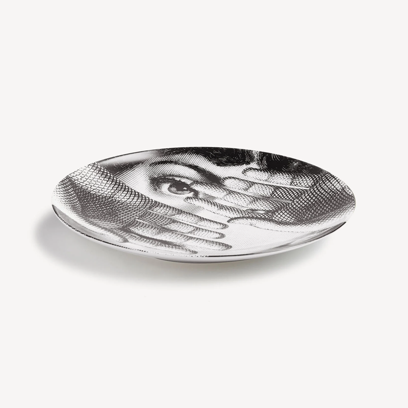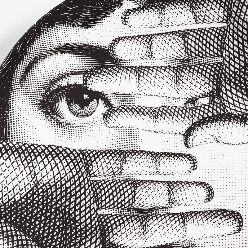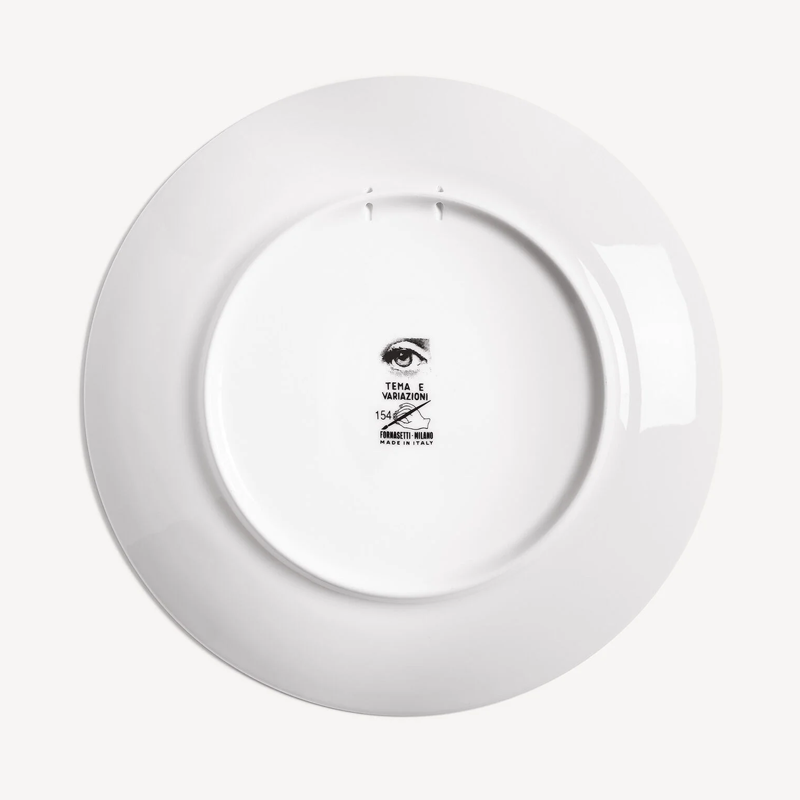 The face of the opera singer Lina Cavalieri, an icon featured in countless reinterpretations by Piero Fornasetti, embellishes this hand-decorated porcelain plate from the Tema e Variazioni series: a true collector's item that you can use as a wall plate, thanks to the presence of two holes on the back, but also as an ornamental piece for table art. For cleaning, we recommend using a damp cloth without detergent.