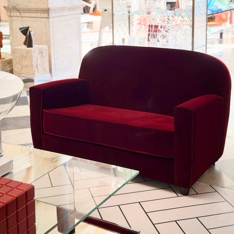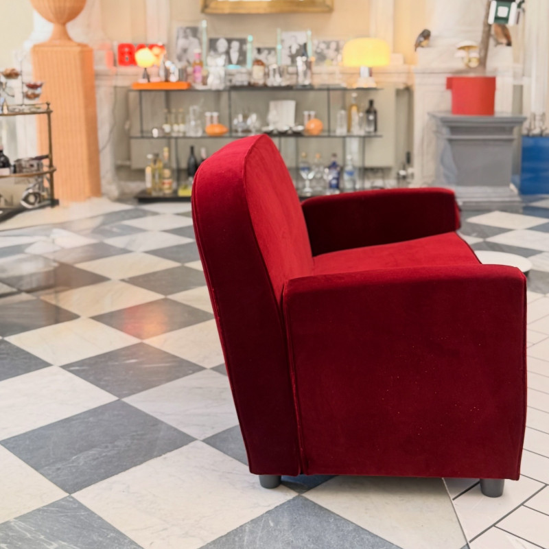 Upholstered in deep burgundy velvet, the loveseat gains a rich chromatic depth that effortlessly complements both classic and contemporary interiors, from private residences to hospitality settings. Vigilius is a quiet, cultured object—faithful to Matteo Thun’s design philosophy—where essential forms, warmth, and longevity come together in a piece made to endure.