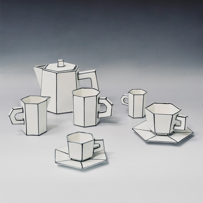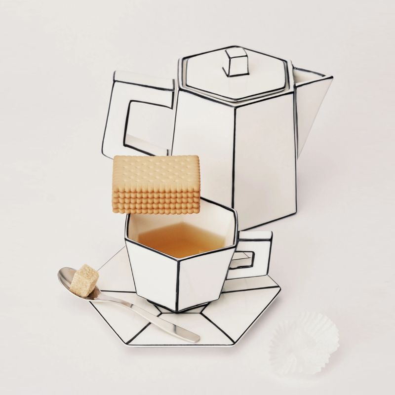 With its uneven edges and graphic details, this jug brings the playful spirit of cardboard to porcelain. With hand-drawn lines and asymmetrical contours, it brings creativity and character to any table setting.