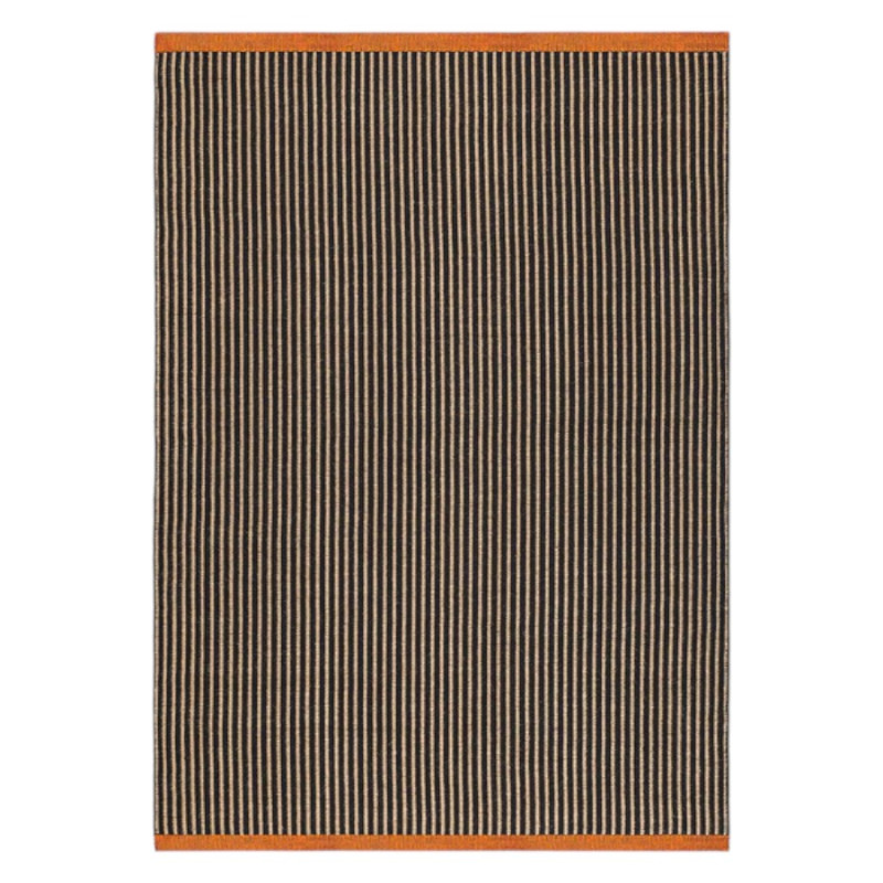 This contemporary rug features a carefully balanced composition of colors and patterns. The integrated contrasting orange band introduces a lively accent, while the black stripes create a bold visual rhythm. The flat weave technique not only contributes to its sleek profile but also ensures ease of maintenance, making it an ideal choice for high-traffic areas. Its adaptable nature allows it to seamlessly fit into different environments, from modern living rooms to minimalist entryways. Whether placed under a coffee table or as a statement piece in a larger area, it enhances the overall ambiance of a space, offering both function and style.