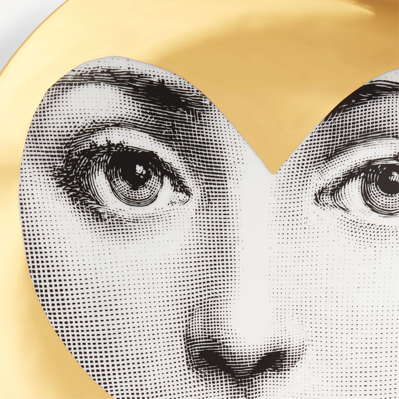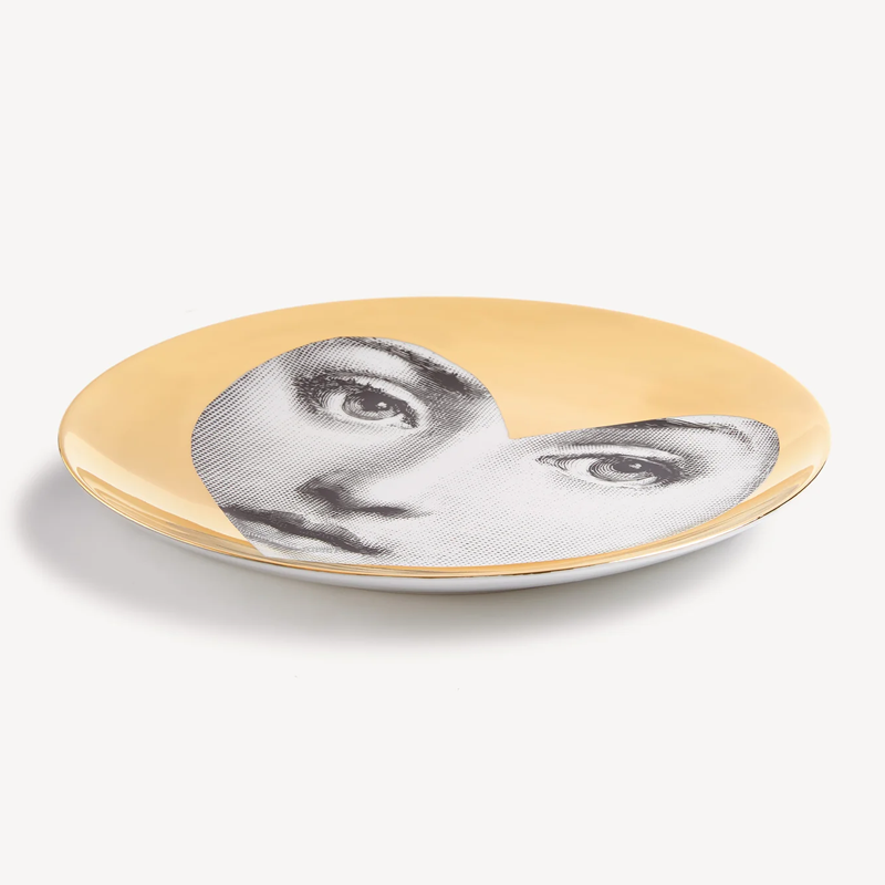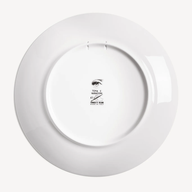 The face of the opera singer Lina Cavalieri, an icon featured in countless reinterpretations by Piero Fornasetti, embellishes this hand-decorated porcelain plate from the Tema e Variazioni series: a true collector's item that you can use as a wall plate, thanks to the presence of two holes on the back, but also as an ornamental piece for table art. For cleaning, we recommend using a damp cloth without detergent.