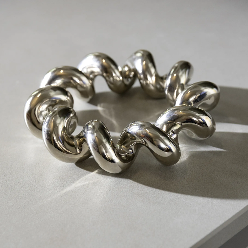 The twist trivet combines form and function with its striking geometric twisted design. Cast from metal and finished with a heat-resistant chrome coating, it protects your surfaces while adding a modern, sculptural touch to your kitchen or dining table.