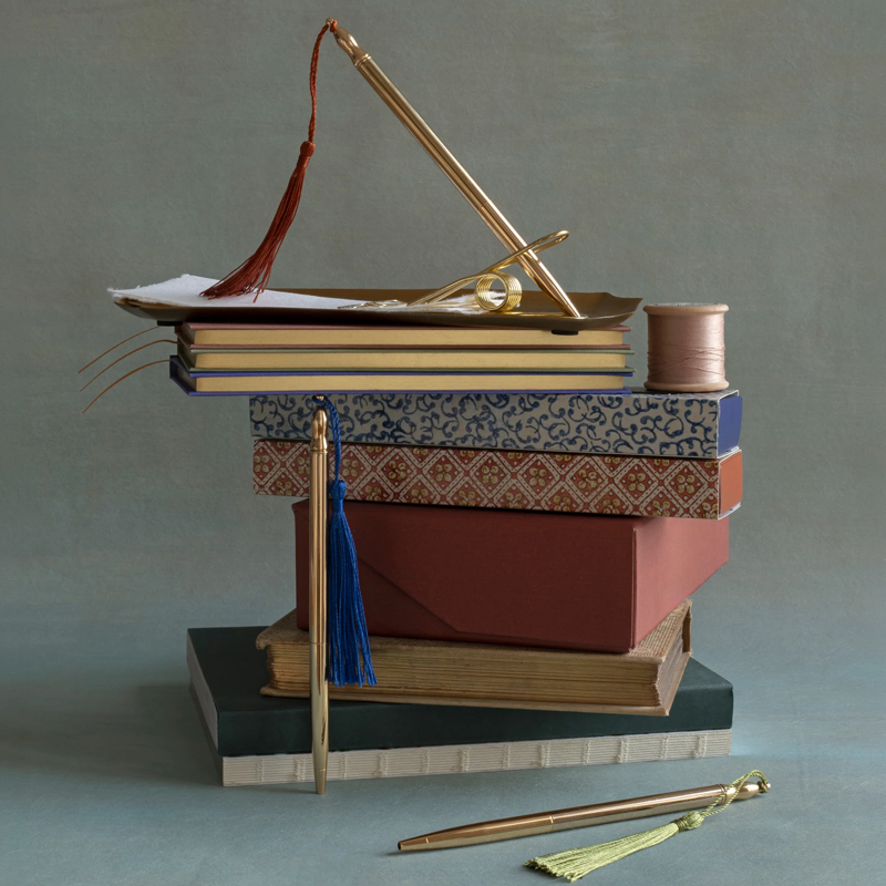 GOLD PLATED PEN GREEN TASSEL