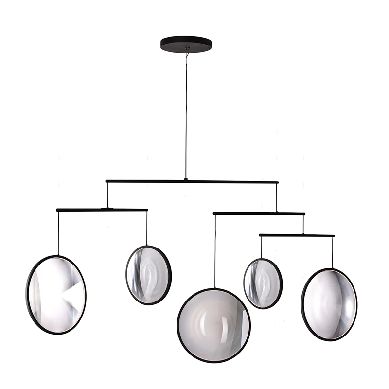 Chandelier composed of 5 luminous discs in PMMA (acrylic glass).