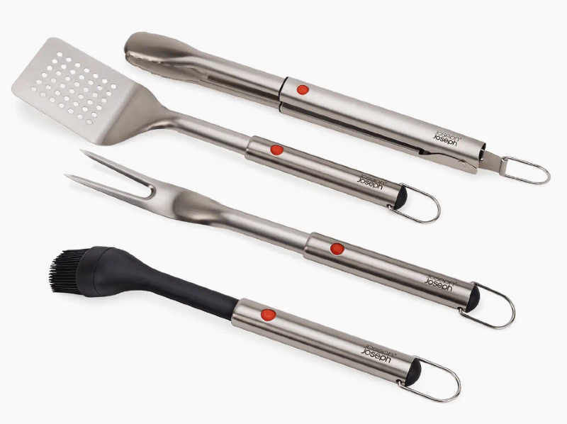Utensil heads retract for compact storage.