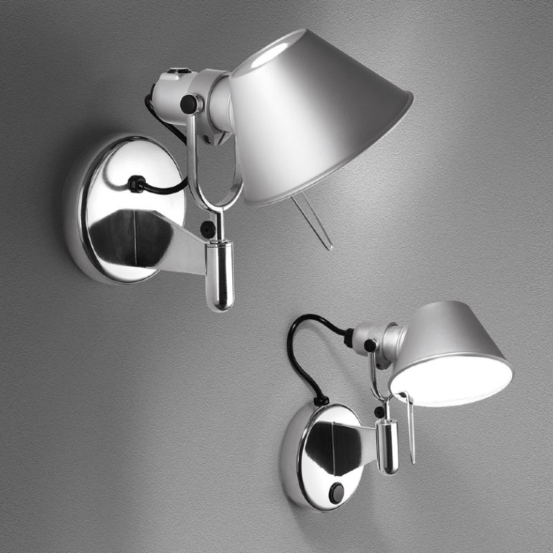 Wall support in polished aluminium, fully rotational diffuser in matt anodised aluminum.Available in two dimensions. Tolomeo micro faretto is available with or without switch situated on the back plate. Direct adjustable light emission.